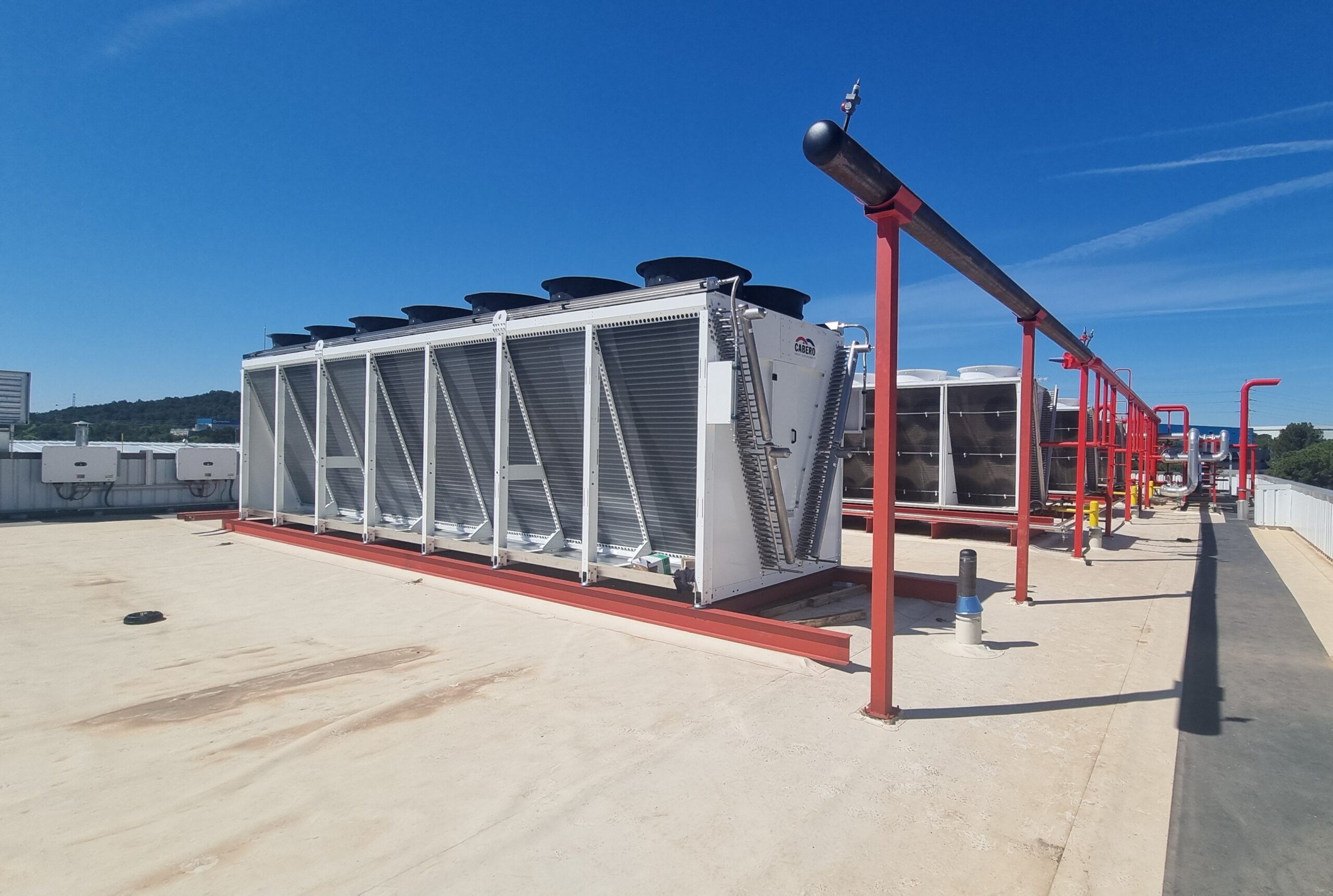 Instalación de sistema de refrigeración con amoníaco (NH₃) bombeado para túneles y cámaras de congelación, y con agua glicolada para las salas blancas, salas de elaboración y cámaras refrigeradas. También incluye una pila energética para maximizar la recuperación de calor, aprovechando el funcionamiento del sistema...